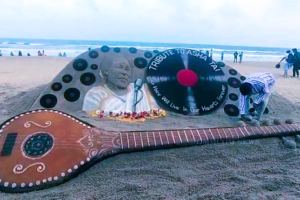 Sudarsan Pattnaik’s Sand Veena Honors Asha Bhosle at Puri Beach