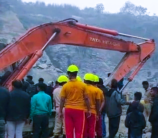 A devastating explosion in an illegal black stone quarry at Gopalpur village under Badalo and…