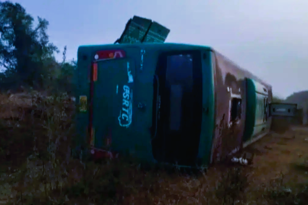 A government-run Odisha State Road Transport Corporation (OSRTC) bus overturned near the Salur bypass in…