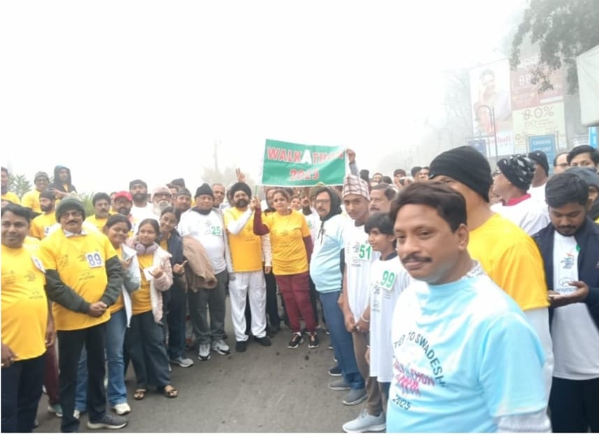 November 23, 2025, Rourkela, In order to encourage Prime Minister Narendra Modi’s Atmanirbhar Bharat campaign and to convey the message to the people to adopt Swadeshi as much as possible, a grand walkathon or Ganapadyatra was organised at Chhend VSS Market under the joint auspices of Rotary Club of Rourkela Riverside and Inner Wheel Club.